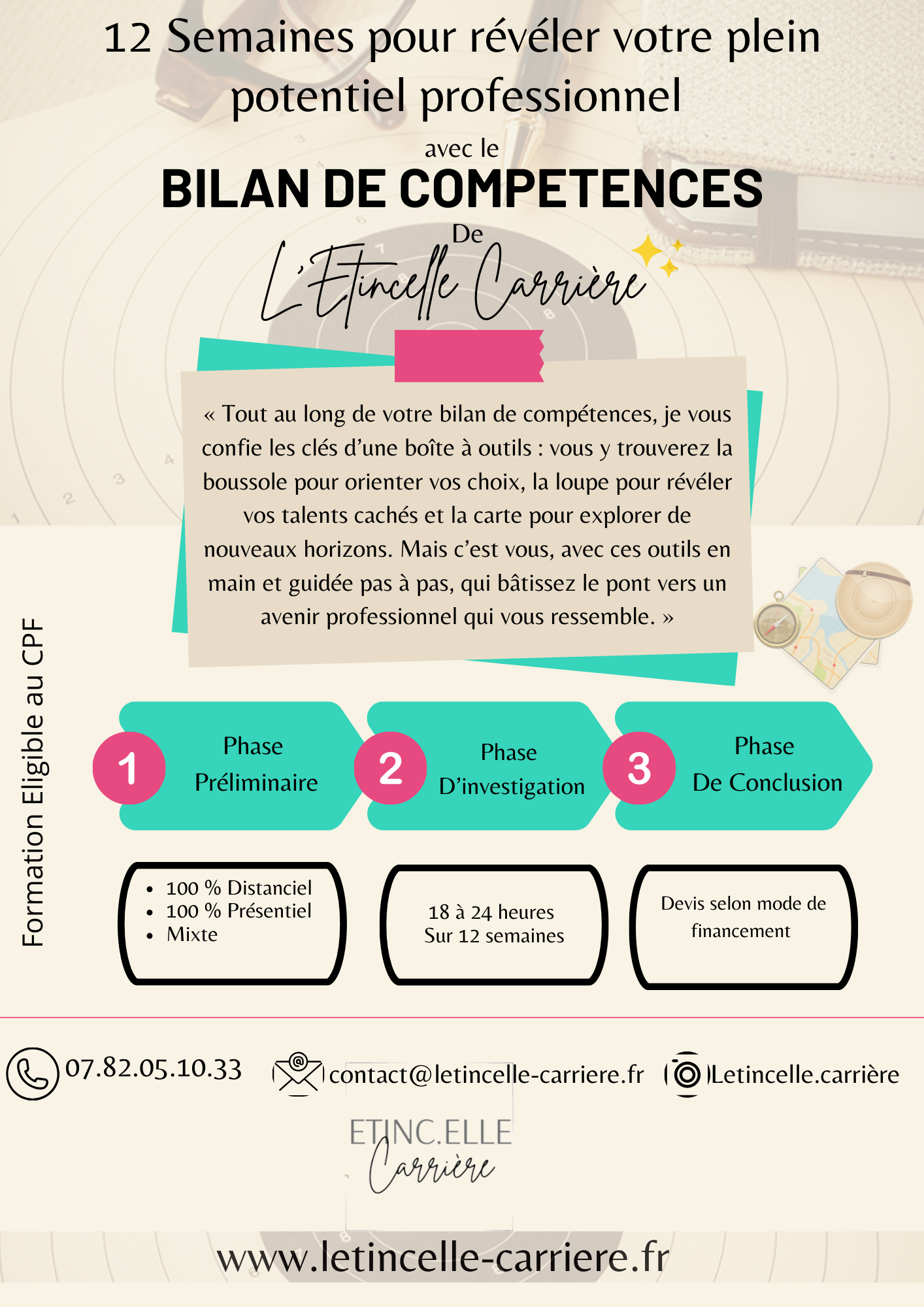 ✔ Construire un projet professionnel concret et cohérentTout au long du bilan, je vous accompagne pas à pas, avec des outils adaptés, des temps d’échange et de réflexion, dans un cadre bienveillant, confidentiel et sécurisant.